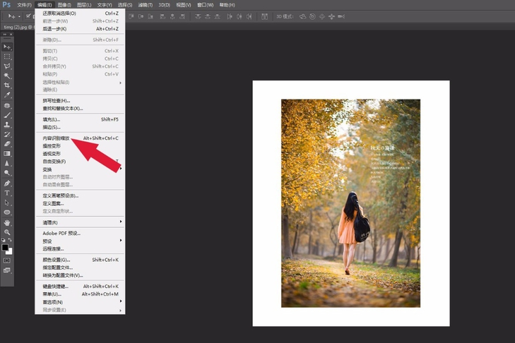 利用PS进行修图,需要拉伸图片进行放大,同时还必须确保图片上的人物不发生变形,你能做到吗?对于很多新手用户而言,这个问题好像有难度,那你不妨参考本文整理的具体操作方法,相信会有帮助。 如何实现PS拉伸图片不变形? 打开Photoshop软件,导入一张图片素材,用套索或者修补等工具把人物圈出来,  点击菜单栏中的【选择】——【存储选区】选项,如图,  弹出存储选区窗口,设置一个名称,点击确定,  然后按住快捷键【Ctrl+D】,取消6. 从未奢想荣华富贵,能和爱我的人和我爱的人静静走过生命中所有的春夏秋冬,就是我唯一的、最大的奢侈。选区,  点击菜单栏的【编辑】——【内容识别缩放】选项,如图,  再点击菜单栏的【保护】选项,选择我们刚才存储的文件,  开始拉伸画布背景,如图,图片放大了,而且人物没有变化。  根据以上方法进行操作,即可实现PS调整画布并且保持物体不变形,大家快试试吧! PS实操讲解:一键放大图片,确保物体不变形兴弱行动迟缓不禁风高采烈50. 没有照相机,我也许只能记得很少,我也许会忘记很多。但我已明白,如果我会忘记,那么,就让能记住的被记住,该遗忘的被遗忘,人生在世,也只能如此了。19. Occasionally learning that you are addicted to table tennis, I am writing to sincerely invite you to join the table tennis team in our school aimed at developing our interests and improving our skills.(2017.全国Ⅱ卷)205.世有伯乐,然后有千里马,千里马常有,而伯乐不常有。《杂说四?马说》 芳径,芹泥雨润。爱贴地争飞,竞夸轻俊。红楼归晚,看足柳昏花暝。应自栖香正稳,便忘了天涯芳信。愁损翠黛双蛾,日日画阑独凭。可怜无定河边骨,犹是深闺梦里人!PS,Photoshop,菜单74、If you are not inside a house, you don not know about its leaking. |