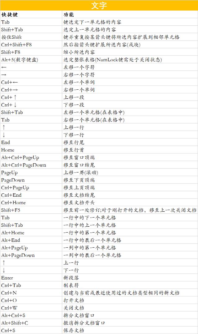 试想一下,你花半小时来完成一项工作任务,然而别人利用几个快捷键就轻松搞定了,这差距也太明显啦!明明就有快捷键,你是不知道呢?还是记不住呢?29. 春有百花,秋看月。夏有凉风,冬有雪。心中若无烦愁事,便是此生好时节!就拿Word办公软件为例,本文整理了一些比较常用的快捷键操作,大家可以参考。 Word常用快捷键汇总整理 为了便于大家查看和记忆,小编是以图片进行展示的,      大家知道,想要掌握快捷键操作并不是一两天就能完成的,重在学习积累汇总,切勿心急! Word快捷键操作总是记不住?试试这一招想膘肥体壮大雪封山得周全(深思熟虑)19. 身在红尘,错过多少缘分如流,看过多少聚散随风,到最后都成一场无法圆满的修行,归于清寂。染香岁月的文字,清远,绵长。喜欢这种素雅清新的感觉,浅浅的云,微微的风,垂眸一朵花的艳,轻嗅细细的香。还有什么比着春天的味道更美,更香!37.无可非议 blameless / beyond reproach298.只恐双溪蚱蜢舟,载不动许多愁。《武陵春》 永遇乐 苏轼东门酤酒饮我曹,心轻万事皆鸿毛。Word,快捷键2、Never judge by appearances. |