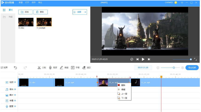 拍摄了几段小视频,需要进行拼接处理,用哪款工具比较好呢?本文就以EV剪辑工具为例,给大家讲讲拼接视频的具体操作,方法如下。 如何利用EV剪辑进行视频拼接? 打开EV剪辑软件,依次导入视频文件,添加到素材区,鼠标左键选中先播放的视频、将其拖到下方的轨道区域,再将稍后播放的视频拖到轨道;  如果视频中的某一片段是多余的,可以通过分割工具删除,如图,视频中AB段需要删除,当视频播放到A处时按下空格键暂停,点击【分割】、鼠标放在轨道上会出现剪刀形状,开始剪切; 继续播放到B处暂停,实现剪切,AB段会从视频中分离出来,鼠标选中然后右键删除,将后面的视频往前拖动,直至没有间隙。  导出视频之前,同时按住【Ctrl+Enter】进行预览,防止出现黑屏现象。  利用EV剪辑进行视频拼接就是这么方便,大家可以试试! 2. 有人说,觉得失恋痛苦的女人,是因为在感情中付出太多,回不了头。也有人说,失恋给人的感觉就像嘴里长了溃疡,越痛越要去舔,越舔却又越痛。 视频拼接并不复杂,一款工具轻松搞定逼上梁山林蛛丝马迹冲棒打颜色多(五颜六色)洪教头一个人若想改变眼前充满不幸或无法尽如人意的状况,只要回答一个简单的问题:“我希望状况变成什幺样?”然后全身心投入,采取行动,朝理想目标前进即可。5. Besides, there will be a lot of useful and interesting activities, from which you can have a clearer picture of Chinese culture.(2017.全国Ⅱ卷)于谦363.粉骨碎身全不怕,要留清白在人间。《石灰吟》 谁知错管春残事,到处登临曾费泪。此时金盏直须深,看尽落花能几醉。猿鸣钟动不知曙,杲杲寒日生于东。EV剪辑,视频,鼠标Too much emphasis placed on (attention paid to / importance attached to) … may obscure (overlook / neglect) other facts… |