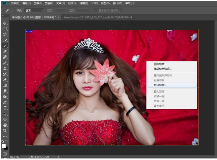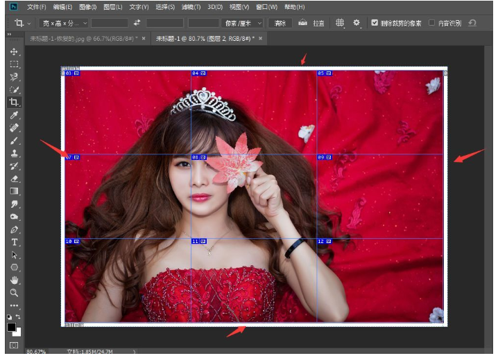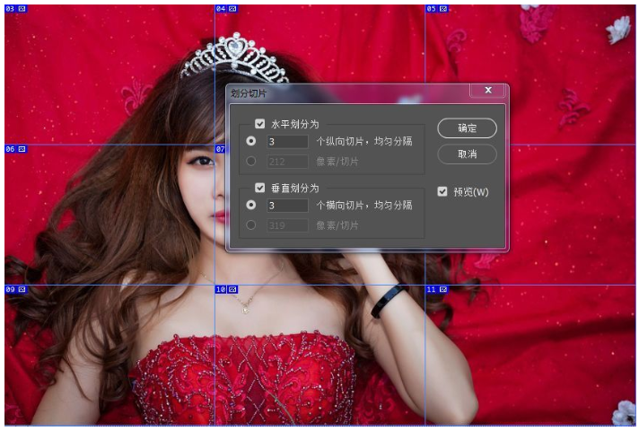 制作九宫格照片的方法有很多,只是难易程度不一样,之前小编有给大家介绍几种方法,相信小伙伴们已经学会了。今天主要介绍使用Photoshop制作九宫格照片,操作不复杂,分分钟就能学会。 如何利用PS制作九宫格照片效果?42. 恋情是生命的全部,失恋是恋爱的前提,她会让我心动,但不会让我死心,我要好好的活下去,前面有更好的风景。 打开Photoshop软件,新建一个文档,宽、高分别为960像素、640像素,导入照片素材,将其复制到文档,得到图层1,  点击工具栏中的裁剪工具,选择切片工具,鼠标按住图片左上角,然后拖动到右下角,如图,  鼠标右键单击画布,选择划分切片,勾选水平划分和垂直划分,数量为3,效果如图,   回到工具栏,打开矩形选框工具,框住第1张被分割的图片,按住Ctrl+J复制出来,得到图层2,效果如图,  剩下来的8张小图片就按照以上步骤进行处理,得到图层10,效果如图,  回到图层面板,把图层1前面的小眼睛关掉,点击菜单栏的图像——画布大小,弹出窗口,将宽度和高度各自增加20像素(根据自己图片而定),效果如图,   我们可以清楚看到画布已经增加出来,接着把9张小图片往外移动,先选中图层2,往外移动到合适位置,打开切片工具,在图层2的图块上右键删除切片,效果如图,   其他8张小图片根据相同操作进行移动,九宫格效果图片就制作出来了,如图。  利用PS制作九宫格图片还是很简单的,大家学会了吗? 制作九宫格照片有何难?一键Get简单方法万木翠色天寒地冻欲流葱茏要留下人生足迹,就必须一步一个脚印;要少走人生弯路,就必须三思而行。64. So far we have conducted a variety of activities on English learning.(2010.湖南)王昌龄150.秦时明月汉时关,万里长征人未还。但使龙城飞将在,不教胡马度阴山。《出塞》 午梦千山,窗阴一箭,香凝瘢新褪红丝腕。隔江人在雨声中,晚风菰叶生秋怨。不觉碧山暮,秋云暗几重。Photoshop,PS,鼠标,切片工具,文档15、A contented mind is a continual / perpetual feast. |