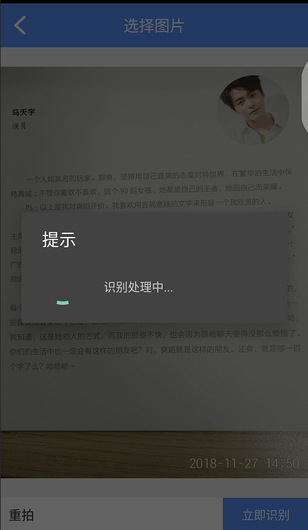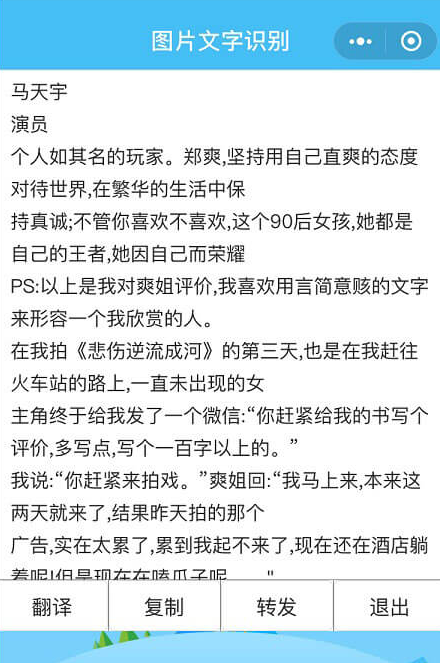 如何识别提取图片上的文字信息?如果你想不到好方法,只能在一旁手动打字输入,这得多费劲儿吖。今天小编就给大家介绍两种方法,通过手机将图片文字提取出来,超简单哟! 手机中如何提取图片文字内容? 方法一、手机APP 打开迅捷文字识别APP,进入界面,点击拍照识别,  拍下需要识别的文字,拍好之后,单击确定按钮,  页面跳转,点击立即识别按钮,稍等一会,即可完成识别,  识别后的文档,  方法二、微信小程序 如果你觉得下载安装APP不方便,可以借助微信小程序! 打开微信,点击搜索“迅捷文字识别”小程序,找到小程序并进入,  进入小程序,可以看到两个功能按钮——照片/拍照、票证识别,这里以拍照识别为例,  点击拍照,拍摄要识别的图片文字,拍好之后点击使用照片,  开始识别,耐心等待一会即可。  方法已教,大家以后可别再说不会提取图片上的文字了。 50. 失恋了,好似上帝再给你一次重新选择的机会,让你看清对方,看清自己。让你知道自己真正想要的是什么。 手机提取图片文字超简单,方法多的是黔想得荒唐(痴心妄七拼八凑想)驴技穷12. 人生路上,你我都是过客,来去皆是缘分。也许,某年某月的某一天,某条街上,一个熟悉的背影出此刻我的视线,也正好蓦然回首,却不是你的脸,只是恰似你的温柔。get close to 接近《老子》60.祸兮,福之所倚;福兮,祸之所伏。 怎知他、春归何处?相逢且尽尊酒。少年袅袅天涯恨,长结西湖烟柳。休回首,但细雨断桥,憔悴人归后。东风似旧,向前度桃花,刘郎能记,花复认郎否?猿鸣钟动不知曙,杲杲寒日生于东。拍照,迅捷,文字识别,小程序,微信In 1999, it increased (rose / jumped / shot up) from 5 to 10 percent of the total (to 15 percent / by 15 percent). |