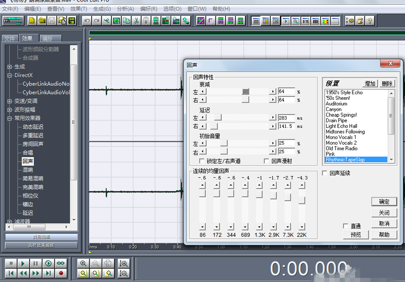 Cooledit是一37. 世界说大很大,说小很小。大到走了那么久,还没跟对的人相遇,小到围着喜欢的人绕一圈,就看到了全世界。款比较专业的音频处理工具,提供了多种特效,其中就包括回声效果。如果你需要给音频文件添加回声,完全可以借助cooledit,下面介绍相关操作。 如何使用cooledit制作回声效果? 打开cooledit软件,右键单击“文件”选项,在下拉菜单中点击“打开”,  弹出对话框,找到需要导入的音频文件,将其添加进来,  选中需要添加回声的部分,切换到效果选项,找到回声选项,双击打开回声对话框,  在对话框中调整衰减值,点击预览按钮进行试听,如果不合适就继续修改参数,然后点击确定,  这时会弹出“增加回声效果”的进度条,等待结束,再次试听效果,  如果你很满意这个效果,就将音频文件保存并导出。 音频回声效果很容易实现,cooledit帮忙搞定挥汗骄阳似夜色迷人火如雨45. 人生是一支歌,悠扬的旋律谱写出你春天的耕耘和秋天的收获;人生是一幅画,优美的线条勾画出你黎明的勤奋和傍晚的辉煌;人生是一首诗,优美的意境,书写着你失意的懊恼和成功的喜悦。92. On Sunday, May 18, we will visit Beijing, which has a history of 400 years.268.扬子江头杨柳春,杨花愁煞渡江人。郑谷《淮上与友人送别》 笙歌散尽游人去,始觉春空,垂下帘栊,双燕归来细雨中。161温庭筠:送人东游CoolEdit,音频,音频处理27、Haste makes waste. |