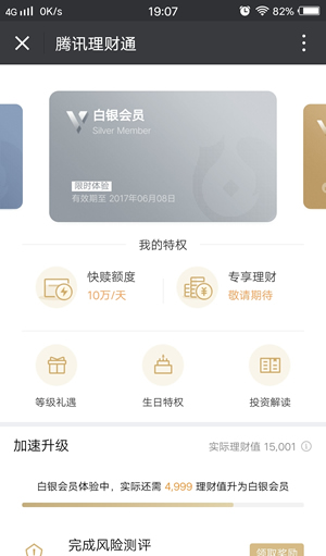 微信理财通会员是微信最新推出的一项服务,很多小伙伴对此还不是很了解,想必大家最关心的就是这个究竟是有什么用,有哪些特权呢?接下来,就和小编一起来详细了解下吧。 微信理财通会员是什么? 根据官方数据,自2014年上线以来,腾讯理财通已为投资者赚取了超过90亿的收益。 今天,腾讯理财通正式开启“会员服务体系”测试,已经有部分小伙伴拿到了抢先体验资格。  微信理财通会员有什么用? 理财通将会员等级划分为4级:普通会员、白银会员、黄金会员、铂金会员。更高等级的会员将获得更丰富的权益。 比如,普通会员只有“生日特权”,白银会员则有10万/天的“快速赎回”额度,还有“专属理财”。而黄金会员和铂金会员还有“专属客服”。  会员等级有“理财值”决定,理财值的获得主要通过以下3点: 总资金量。每持有100元1天,可获得1理财值 资产持有时长。资产超过100元的天数越多,获得的理财值越多 任务完成情况。完成指定任务即可获得相应理财值 理财通的会员等级与支付宝的会员体系类似,不过毕竟是理财平台,金钱的气28. 不管遇到怎么样的困难,不管遇到多大的挫折,人总要活在希望里,哀莫大于心死,要在困境中奋起,在失望中充满希望。息更为浓郁,好在铂金会员人数并没有限制比例,不然只有“土豪”才能达到了。      微信理财通开启“会员服务体系”测试,微信理财通会员有哪些特权?头鲜嫩不毛之地水灵重脚轻18. 梦幻的笔,书写浪漫的情怀,犹若那深谷幽兰,暗香浮动,妩媚独舞。我建议有关部门采取一些有效措施改善现状。200.马上相逢无笔纸,凭君传语报平安。《逢入京使》 夜合花 吴文英风暖鸟声碎,日高花影重。微信In a society that changes as fast as ours, experience simply does not have the value that it does in traditional societies. |