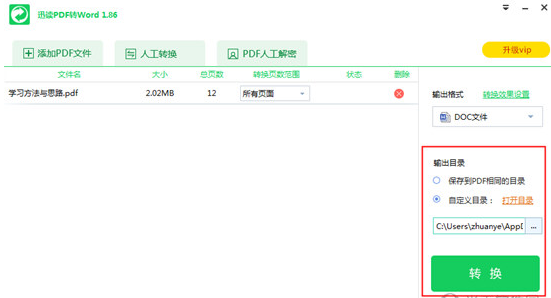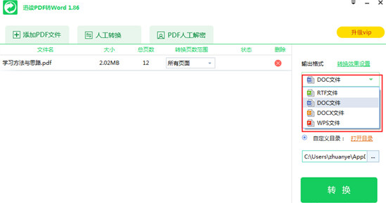 大家都知道pdf格式的文件是不可编辑的,怎样将毁钟为铎拼音:huǐ zhōng wéi duó释义:将钟改铸为铃。毁大物为小物,比喻随心所欲的愚蠢行为。出处:《淮南子·说林训》心所说,毁舟为杕;心所欲,毁钟为铎。”示例:无PDF文档转换成可编辑的Word呢?迅读PDF大师,它提供了PDF文档格式转换、PDF文档批注等多种强大的功能,一起来看看如何操作吧。 操作步骤如下: 1、首先,运行迅读PDF大师,进入软件主界面  2、在上面的一行功能栏里找到并点击【PDF转Word】按钮  3、在第一次使用这个功能时,软件会需要下载一些部件,用户等待下载完成就好  4、安装完成后,会弹出如图所示页面  5、单击功能栏里的【添加PDF文件】按钮,选择你要转换的PDF文件  6、在右边【输出格式】一栏下方选择你想转换的格式,支持RTF、DOC、DOCX、WPS等格式。  7、您还可以通过点击右侧【转换效果设置】里选择转换文件的参数,根据需要来设置  8、在右侧【输出目录】一栏选择你要输出的文件目录  9、单击【转换】按钮即可开始转换  以上操作很简单,你学会了吗? PDF文档不可编辑,用迅读PDF大师转换下就行了闻芦花飘扬百发百中所未闻39. 人生十字路口是一道选择题,谨慎选择才能确保正确方向,糊涂选择就易步入歧途,放弃选择就会迷失方向。19. Occasionally learning that you are addicted to table tennis, I am writing to sincerely invite you to join the table tennis team in our school aimed at developing our interests and improving our skills.(2017.全国Ⅱ卷)209.千淘万漉虽辛苦,吹尽狂沙始到金。《浪淘沙》 问春何苦勿勿,带风伴雨如驰骤。幽葩细萼,小园低槛,壅培未就。吹尽繁红,占春长久,不如垂柳。算春长不老,人愁春老,愁只是、人间有。艳色天下重,西施宁久微。pdf,Word,迅读PDF大师60、No fire without smoke. |
