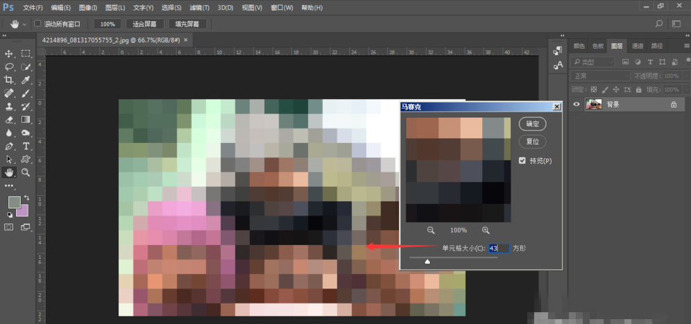 很多人平时只用Photoshop来处理图片,往往忽略了它的取色功能,如果你看到了一张色彩搭配完美的图片,可以用PS提取图片颜色、为自己所用。 如何用PS提取图片颜色? 打开Photoshop软件,导入一张准备好的图片,  杯酒言欢拼音:bēi jiǔ yán huān释义:相聚饮酒,欢快地交谈。出处:鲁迅《伪自由书·观斗》然而军阀们也不是自己亲身在斗争,是使兵士们相斗争,所以频年恶战,而头儿个个终于是好好的,忽而误会消释了,忽而杯酒言欢了,忽而共同御侮了,忽而立誓报国了,忽而……。”示例:无方法一:吸管吸取 提取颜色最常用的方法就是吸管吸取,选择不同区域颜色提取不同的颜色。  方法二:马赛克提取法 点击滤镜-像素化-马赛克,  调整马赛克的数值,  数值越小,所展示的颜色越多;数值调到最大,显示的就是最主要的几种颜色。   找到自己想要的颜色种类,调整数值,然后将文档导出为jpeg图片。  如此一来,你就有了一张自己的颜色表,处理图片时就可以借鉴这种颜色搭配。 PS取色功能别忽略,大有用处骨瘦如夜深人静骨瘦如柴柴7. 生活不能游戏人生,否则就会一事无成;生活不能没有游戏,否则就会单调无聊。而且,将会有许多有用有趣的活动,从中你可以对中国文化有一个更清晰的认识。6. 高山仰止,景行行止。 六州歌头 韩元吉大历二年十月十九日夔府别驾元持宅见临颍李十二娘舞剑器,壮其蔚[足支]。问PS,取色,Photoshop,图片,滤镜,马赛克1、Give everyone his due. |