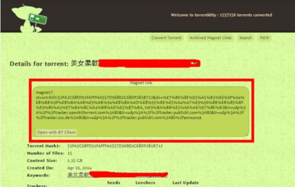 Torrentkitty是一款功能强大、资源数据库庞大的种子搜索工具,有用户反映,在使用过程中会出现torrentkitty打不开的情况,这是为什么呢?该怎么解决呢?下面小编就来为你解决该问题。 由于该网站是国内的一个BT种子下载地址,因此可能会受到国内有关政策的限制而无法正常打开,或者由于网络原因近期出现了打不开的现象。如果有需要访问该网站获取电影种子的用户,可以通过以下方法来打开该网站,寻找适合自己需要的种子文件下载地址。  torrentkitty打不开了怎么办? 打开百度搜索框,输入“在线代理”关键词,从搜索结果中任意选择一个链接进入。 然后在打开的代理界面中,输入torrentkitty的官方网站,选择相应的“代理服务器”,然后点击“代理浏览”按钮。  此时将通过代理服务器打开“torrentkitty”官网,在官杯觥交错拼音:bēi gōng jiāo cuò释义:比喻相聚饮酒时的欢乐。觥,酒器。出处:宋·欧阳修《醉翁亭记》射者中,弈者胜,觥筹交错,坐起而喧哗者,众宾欢也。”示例:近30年未见的几个老同学齐聚一堂,~,乐不可支。网界面中点击“Search”按钮。 接着在搜索框中输入想要查找的关键词,点击“Search”按钮。并从搜索结果中,点击相应链接后面的“Open”按钮。  此时当电脑安装有迅雷时,就会自动对磁力链接进行分析,并启动下载进程。 待分析完成后,就可以点击“立即下载”按钮下载相关视频啦。  当然,我们也可以通过点击搜索结果列表中对应项的“Details”按钮来获取种子的详细信息。  在“详细页面”中就可以得到种子的磁力下载地址,最后利用其它具有磁力下载功能的软件实现视频的下载操作。 Torrentkitty无法打开是为什么?怎么解决呢?娓发奋图强龙腾虎跃娓动听32. 什么路都能够走,唯独绝路不能走;什么路都能够选择,唯独歧途不能选择。I suggest the department concerned taking some effective measures to improve the present situation.238.借问酒家何处有,牧童遥指杏花村。《清明》 梦觉透窗风一线,寒流灯吹息。那堪酒醒,又闻空阶夜雨频滴。嗟因循、久作天涯客。负佳人、几许盟言,便忍把、从前欢会,陡顿翻成忧戚。归山深浅去,须尽丘壑美。Torrentkitty,torrentkitty打不开To assume (suggest) that … is far from being proved (to miss the point). |