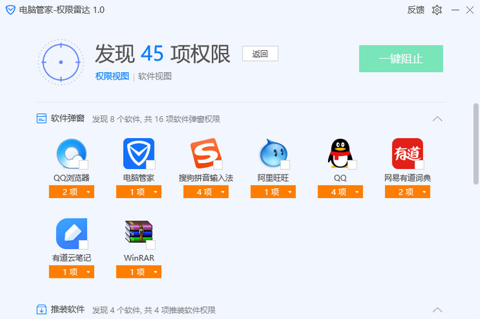 腾讯电脑管家一直以来被用户diss的原因就是有广告,还带捆绑,为此腾讯出了一款“电脑管家纯净版”,一起来看看电脑管家纯净版到底有多纯净吧。 简约风格新界面 电脑管家纯净版的主界面经过了全新的设计,新界面采用了简约风格,左侧为功能分类区域,右侧为内容显示区域,依据功能划分为了“首页体检、病毒查杀、垃圾清理、电脑加速、工具箱及软件管理”。界面支持换肤功能,自带几款漂亮的皮肤。  电脑管家纯净版主界面 权限雷达 自启动弹窗广告等流氓行为哪里逃 在电脑管家纯净版的首页右下角就可以看到“权限雷达”功能,在手机中各种APP所要的权限,我们可以通过权限管理工具来进行管理,那在电脑中的软件们的权限又如何快捷统一的进行管理呢?电脑管家纯净版的“权限雷达”功能就此诞生。 点开权限雷达工具,可以看到,它需要经过扫描后才能进行权限管理,在左下角我们可以查看到权限雷达可以管理的软件的权限有七个,分别为“开机自启、生成桌面图标、QQ记录保护、软件弹窗、添加右键菜单、微信记录保护、推荐软件”,这其中有几个都是用户所厌烦的软件流氓行为。  权限雷达首页 经过一段时间的扫描,权限雷达已经查找出小编电脑里有相关问题的软件了,权限雷达将扫描结果分完了权限视图(按照权限分类)与软件视图(可以查看每个软件所触发的权限)。  权限雷达扫描结果(权限视图)  权限雷达扫描结果(软件视图) 从扫描结果中我们可以看到,权限雷达功能扫描的比较全面,而且毫不徇私,不仅将自家的QQ、QQ浏览器扫描出软件弹窗(营销广告、购物推荐),甚至连它自己也不放过。  对自己人也毫不徇私 在扫描结果中,权限雷达对软件所申请的权限都进行了解释,这就避免了用户误禁用权限的情况发生。对于想要禁用的软件权限,用户只需要勾选然后选择一键阻止即可。  勾选想要禁用的权限 此外,用户还可以在权限雷达中查看软件权限行为记录。  行为记录 寸地尺天拼音:cùn dì chǐ tiān释义:指一小块土地和天空。出处:唐·杜甫《洗兵马》寸地尽天皆入贡,奇祥异端争来送。”示例:无猎鹰17层防护 安全增添保障 除了权限雷达功能,电脑管家纯净版还带给用户“猎鹰全景防御系统”,该系统可以提供三大分类(系统核心、应用接入、网络边界)共17项的防护措施,可以监控进程行为,实时发现和拦截恶意程序和病毒木马。  猎鹰17层全景防护体系 搜索定位小工具 电脑管家工具箱里的小工具越来越多,要找哪个起来就不方便了,电脑管家纯净版增加了搜索功能,方便用户快速定位小工具。  增加了搜索功能 电脑加速提醒 避免误关软件 电脑管家纯净版还升级了电脑加速功能,增加了误关软件智能提醒,避免用户错误关闭软件,比如正在编辑尚未保存的办公软件。  电脑加速功能  关闭软件提醒 腾讯电脑管家纯净版无用功能大多撤了,安全守护功能有所提升,还是可以的。 电脑管家纯净版了解下,捆绑没了,防护功能还提升了观者如云大雨倾盆收回成命15. 雨改变了公园的情调,西北方向的云雾之中,是水墨画似的远山,这在园林建筑中颇被称道的“借”来。到目前为止,我对我们取得的成绩很是满意。220.回眸一笑百媚生,六宫粉黛无颜色。《长恨歌》 澡兰香 吴文英田夫荷锄立,相见语依依。电脑管家,广告,病毒查杀,微信,QQ,监控,病毒,定位Equipped with the money, one can acquire the taste, style, and ideas that mark each class and launch a quick ascent of the social ladder. |