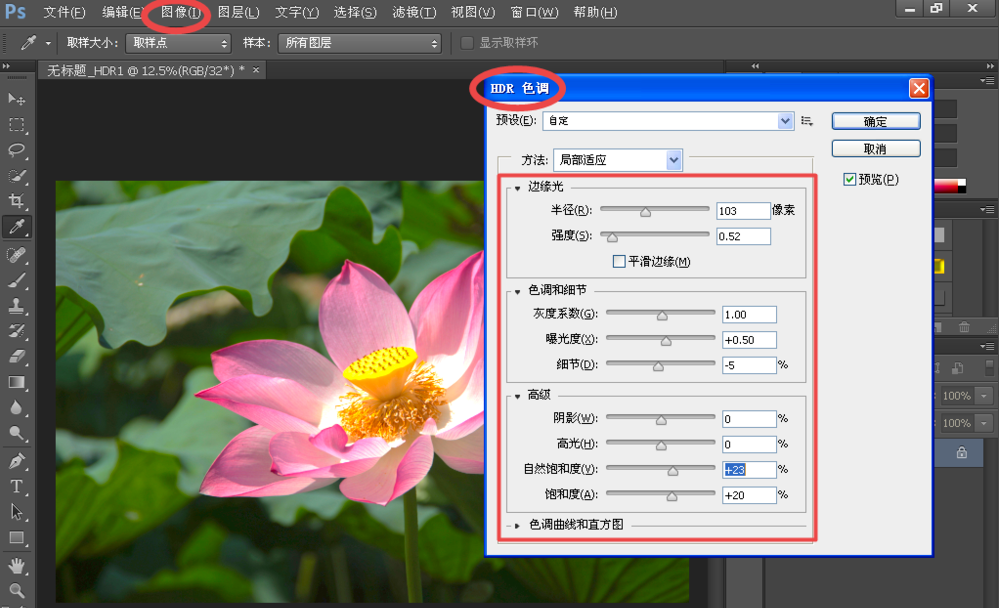 我们在用手机拍照时可以打开HDR模式,照片所呈现的效果就像是人眼直接看到的。如果你忘记启用HDR模式,后期可以借助PS来处理,方法如下。  如何用PS将照片打造成HDR效果? 首先打开photoshop软件,导入素材图片;  点击菜单栏上的图像——调整——曲线;  设置参数,将文件存储为HDR1,如图所示;  重复“曲线”操作,将文件存储为HD34. 其实,这样的失败根本不足以证明什么,失败只能让咱们真正长大,懂得更多,让咱们成熟起来。能够说,咱们如果不经历失败就难到达成功的彼岸!R2;  关闭所有图像,选择“文件”-“自动”-“合拼到HDR Pro”;  在打开的对话框,将素材图像、HDR1、HDR2文件选取;  生成如图所示图像,选择“图像”-“调整”-“HDR色调”;  在对话框中设置参数,如图所示;  即可完成HDR效果操作。 教你用PS制作HDR效果图片,简单易学寸步难百花争艳行晨雾弥漫6. 我以前开玩笑夸他,他竟然感到不安。我知道,其实成功与否,都是需要自己默默努力的事情,别人的褒贬,只是累赘。之后就不再提。任何感兴趣的学生都可以来参加。175.白发三千丈,缘愁似个长。《秋浦歌》 澡兰香 吴文英君不见,金粟堆前松柏里。龙媒去尽鸟呼风。photoshop,PS,拍照,照片,图像13、Just has long arms. |