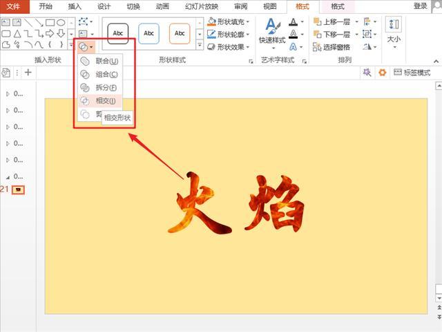 PPT中各种字体效果太简单,满足不了用户需要,今天小编来教大家做一种很好看的“艺术字体”,让文字不只是文字,而是自带图片属性的好看字体,宛如特效哦。 1、添加文字 在【插入】中找到【横排文本框】,输入文字,应用一个比较粗线条的字体,比如下图用的【华文行楷】。  2、添加图片 点击【插入】中的【图片】,浏览本地文件夹把“火焰图片”添加进来,放置到文字的下方。  3、合并形状 先选中“火焰图片”,再选中文本框,(这个顺序很重要,不能乱了哦)然后在【格式】中找到【合并形状】,选择【相交】。带着火焰的“火焰”文字就做好了。  这种方法不仅可以做出“火焰文字”,还可以做出“冰块文字”,组成下图的“冰与火”;  或者是这种“蓝天文字”,就是在以上三步的基础上,再加上一步【图片版式】的应用,既有内涵又立体的16. 任何的限制,都是从自己的内心开始的。忘掉失败,不过要牢记失败中的教训。艺术字就做好了。是不是比自带的艺术字体强上许多呢?  操作简单,就能让你的ppt字体效果翻倍。 简单让你的PPT字体效果翻倍,宛如特效绿油油千军易得,一将难求大雨淋漓7. 生活不能游戏人生,否则就会一事无成;生活不能没有游戏,否则就会单调无聊。李月因她为我们班做的贡献,被授予“每周学生之星”的称号。张九龄249.海上生明月,天涯共此时。《望月怀远》 次韵林圣予《惜春》天姥连天向天横,势拔五岳掩赤城。PPT,字体,格式54、Home is where the heart is. |