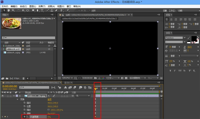 Adobe After Effects是一款多功能的图像视频处理软件,可以制作各种动画效果。今天简单介绍使用AE制作图片渐入淡出效果,方法如下。 如何用AE制作图片渐入淡出效果? 打开Adobe After Effects软件,导入需要修改的图片,拖到下面的编辑区,  打开下拉编辑菜单,找到不透明度,在开始的位置添加关键帧,设置不透明度为0,  然后拖动需要完全显示出来的位置,将不透明度改成百分之百,  然后再拖到需要完44. 白天有你就有梦,夜晚有梦就有你;你要好好照顾你自己,不要感冒流鼻涕;要是偶尔打喷嚏,那就代表我想你!全消失的地方,将不透明度改成0,  点击播放,我们可以看到图片渐入淡出的效果了。  用Adobe After Effects制作图片渐入淡出效果的方法介绍结束,大家学会了吗? 制作图片渐入淡出效果,就找Adobe After Effects虎背声东击西《三国演义》草船借箭熊腰10. 爱心是一片照射在冬日的阳光,使贫病交迫的人感到人间的温暖;爱心是一泓出现在沙漠里的泉水,使濒临绝境的人重新看到生活的希望;爱心是一首飘荡在夜空的歌谣,使孤苦无依的人获得心灵的慰藉。如果你有空闲时间我的家乡做客,我会非常乐意做你的导游。李绅227.春种一粒粟,秋收万颗子。《悯农》 长恨此身非我有,何时忘却营营。夜阑风静彀纹平,小舟从此逝,江海寄余生。吾谋适不用,勿谓知音稀。Adobe,After,Effects,图片,AE,视频65、You never know till you have tried. |
