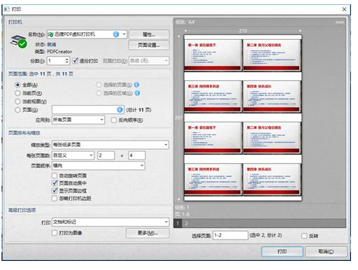 每次打印PPT文件时都要用到几十张纸,其实有些时候用不了这么多纸,会造成浪费的。你要知道,PPT打印也是有技巧的,下面就分享给大家。 1、一页打印多张PPT 首先我们来了解一些基本的打印操作,点击【文件】-【打印】选项,可以看到相应的打印14. 因为我知道你是个容易担心的小孩,所以我将线交你手中却也不敢飞得太远。选项,它们的具体功能在这里:  想要在一页纸上打印多张PPT,设置打印页面幻灯片情况,点击选择“6张水平放置的幻灯片”,就能在右边的预览图里看到一张纸上有6张幻灯片,同理,可以设置4或9张。  除了固定4、6、9张的打印,还可以打印别的数量在同一页吗? 可以!打开迅捷PDF编辑器,把PPT存为PDF文件后导入进去,点击【文件】-【打印】,在【页面排布与缩放】里选择【每张纸多页面】类型,【每张页面数】选择【自定义】,修改为【2×4】的形式,也就是一页打印8张PPT,这是比较好的利用率。  2、打印备注 如果想在幻灯片旁边备注一些会议记录,那些空白的地方不够做笔记,怎么办? 可以点击【文件】-【打印】-【整页幻灯片】-选【3张幻灯片】,同时勾选【根据纸张调整大小】,这样才能高度实现纸张利用率。  3、打印指定页面 有时候不用打印整个PPT,只是想要特定几页的PPT,可以在打印的时候点击【自定义范围】,输入对应的页码数字,如“2,3,5”、“18-28”或者“2,3,5,18-28”,就可以打印指定页面啦!  4、打印格式杜绝错乱 有时候我们不是在自己的电脑上打印,放到他人电脑、外面打印店打印时担心PPT格式错乱,只需一步就能解决格式错乱的问题! 点击【文件】-【导出】-【创建PDF/XPS文档】,就可以变成PDF格式了,打印时、格式就不会错乱啦!  掌握这些技巧之后,我们就不用担心打印PPT遇难题了! PPT打印有技巧,省时、省钱、不费纸五光十色众星捧龙潭虎穴月39. 希望源于失望,奋起始于忧患,正如一位诗人所说:有饥饿感受的人一定消化好,有紧迫感受的人一定效率高,有危机感受的人一定进步快。83. We must learn to handle conflicts calmly and wisely.(2012.江苏)10.一日不见,如三秋兮。 老来情味减,对别酒,怯流年。况屈指中秋,十分好月,不照人圆。无情水,都不管,共西风、只管送归船。秋晚莼鲈江上,夜深儿女灯前。不知何处吹芦管,一夜征人尽望乡。PPT,打印,幻灯片There were 100 traffic accidents in April, and increase of 5 percent in a five-month period. |