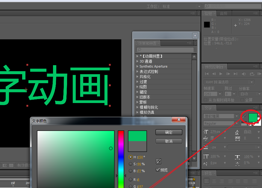 Adobe After Effects(AE)是一款优秀的视频处理软件,应用范围很广,今天要给大家介绍使用Adobe After Effects制作流星雨效果动图的方法,请看教程。 如何使用AE制作流星雨效果? 打开Adobe After Effects,新建一个合成组,将预置设为:HDV/HDTV 720(持续时间3秒)。  在工具栏长按鼠标左键,选择文本工具下的横排文字工具。  选择“定位点”工具,调整文字的轴心点位置。  调整文字颜色并添加动画 在“文字”面板找到文本颜色设置,将颜色设为翠绿色(#08C565)。  在“效果与预置”面板搜索CC星爆,通过鼠标拖拽将其添加到文本层上。  选择“文本图层”,在CC星爆效果,调整“散射”参数为150,让画面上的星点散射的范围更大。  添加新的文字输出动画 再次使用同样的方法,建立新的文本图层并输入“流星”。31. 红尘淡淡,人生如烟,一切的尘缘在冥冥之中都已注定,是喜是悲,都是要走过的,要经历的,我们要懂得;得之,我幸;失之,我命;坦然而过,谈定接受。在“效果和预置”面板,查找“辉光”效果添加到新的文本层上。  完成,动画效果如下图所示!  用Adobe After Effects制作流星雨动画效果的方法就是这样,大家学会了吗? AE在手,随时可以给自己下一场流星雨丰富千丝万缕走得多(走南闯北)多彩20. 生命里,许多缘分,早已不知去向。飘过的风景,擦肩而过的美丽,却依旧在我的文字里寂静,安然,孤寂!你我不曾远离,晨钟暮鼓依旧余音袅袅。经年的涛声里,是否还有我们一路并肩走过的脚印?那一抹心中的蔚蓝,是否还是最初的模样?34. Nothing is more important than to receive education.69.战无不胜,攻无不克。 拟把疏狂图一醉,对酒当歌,强乐还无味。衣带渐宽终不悔,为伊消得人憔悴。摇落深知宋玉悲,风流儒雅亦吾师。Adobe,After,Effects,AE,动画76、An apple a day keeps the doctor away. |