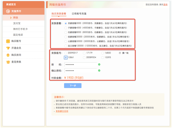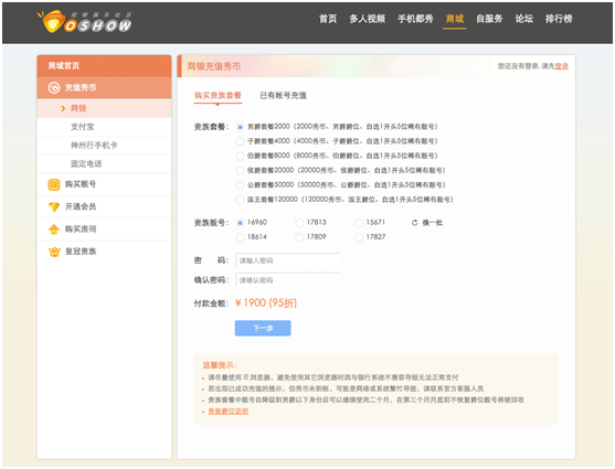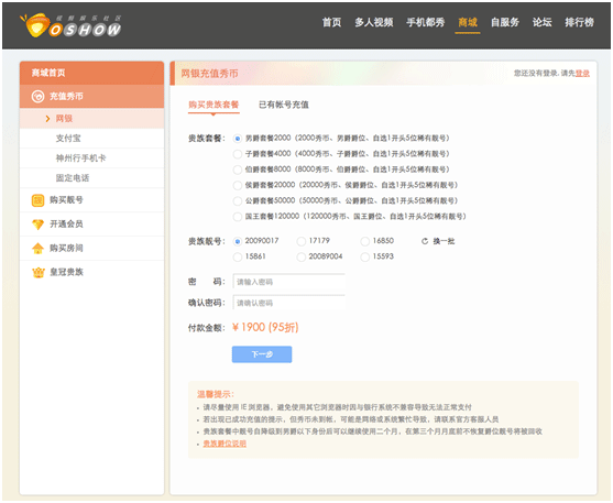 都秀视频社区大家应该都了解了,作为一款多人视频交友软件,都秀旨在为广大互联网用户提供融合数据、语音、视频的高品质多媒体综合娱乐社区服务。今天小编给大家介绍的是都秀视频社区里都秀商城的功能教学,都秀商城是广大都秀用户用来进行充值秀币、购买靓号、开通会员、购买房间、充值贵族的场所。对商城内各种虚拟商品,是否觉得搞不清楚呢?小编今天就带大家仔细了解下都秀商城。 点击都秀界面上方商城便可进入都秀商城首页  1、充值秀币 当你需要为你的账户充值秀币的时候,点击充值秀币进入秀币充值界面 秀币:秀币是都秀的官方货币,人民币1元=1秀币 秀豆:秀豆是都秀官方消费货币,秀币可兑换1秀币=1万秀豆  接下来就是选择充值方式 进入充值秀币界面后可选择4种充值方式  (1)这里我们选择网银充值  像要获得贵族身份就购买贵族套餐吧,选择贵族套餐和贵族靓号进入下一步  选择完成并已确认密码,点击下一步进入订单确认界面  接下来就是充值了  如果你已有账号就选择已有账号充值,如果没有就先注册哦  账号充值需要填写确认充值账号,充值类型,选择充值金额然后进入订单确认界面。  点击下一步进入网银付款界面  (2)如果你想用支付宝付款的话,流程和网银付款是一样的。 (3)软件还支持神州行手机卡充值哦 选择神州行手机卡充值后进入手机卡充值界面 在充值界面填写充值账号,选择充值金额,进入订单确界面 点击下一步进入电话卡付款界面 (4)还有一个就是固定电话充值了 填写确认充值账号后,进入订单确定界面 点击下一步进入固话付款界面 2、购买靓号  在靓号界面选择你需要的靓号类型 (1)在购买界面选择要购买的靓号类型 (2)搜索或者选择自己喜欢的靓号进入支付流程   在选择好靓号后进入支付流程,在支付中可以选择网银支付和支付宝支付  填写完帐号信息后点击进入付款流程,付款成功你就会获得你选择的靓号啦 4、开通会员,都秀会员享有都秀VIP特权  点击立28. 当一个人一辈子不曾失恋过,那他又怎会明白世间还有"失恋"的存在。当一个人从不曾跌倒过,他又怎会知道脚下的大地原来并不是一往平坦。即开通后进入会员开通界面,可以选择网银、支付宝、秀币、秀豆支付。 填写确认账号信息,选择开通时长  点击下一步进入付款界面,付款成功后就行了 其他两个功能操作和以上步骤相同,想要拥有自己的房间或得到皇冠贵族的身份就够快行动起来吧! 都秀商城是什么?都秀视频社区之都秀商城图文教学多如牛毛团结五光十色友爱感情无需奢望,真心就好;缘分无需强求,知心就好。有人能懂,有心能依,有情能惜,这一生足矣。很多东西,任你多么努力终归还是失去;很多感情,任你如何珍惜却重复着相同的别离。88. It is greatly important to try to keep a good relationship with other classmates. (2013.广东)345.养军千日,用军一时。《汉宫秋第二折》 画阁魂消,高楼目断,斜阳只送平波远。无穷无尽是离愁,天涯地角寻思遍。岁暮阴阳催短景,天涯霜雪霁寒霄。都秀视频社区,都秀,视频交友软件Requiring businesses to provide complete product information to customers promotes various consumer interests, but at the same time imposes burdens on businesses, government, and taxpayer. |