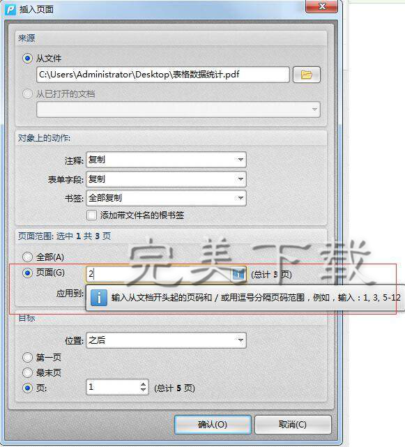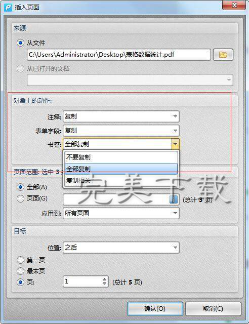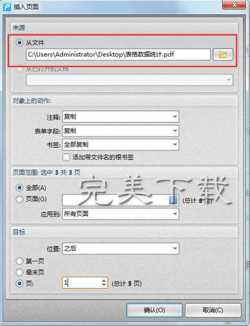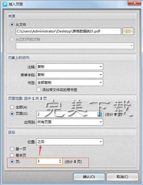 一般来说,由于PDF格式的安全可靠性,我们在编辑处理PDF格式的文件时是需要借助专业的PDF编辑器。如果要在当前PDF文档中插入另一个PDF文件,该怎么操作呢?接下来,小编就给大家介绍用迅捷pdf编辑器在PDF文件中任意插入其他文件的教程。 如何在PDF文件中任意插入其他文件? ①先用迅捷PDF编辑器打开要进行操作的pdf文件,浏览查看文件,确定页面插入的位置。然后在文档菜单中的“插入页面”中选择“插入页面”命令,就会打开相应的对话框。  ②打开对话框后首先在来源中选择“从文件”,然后点击后面的文件夹按钮,找到需要插入页面的那个pdf文件。  ③在对象上的动作中,几个选项可以全部设置选择为复制操作。  ④在页面范围中,选择需要插入的页面。如果是合并文件,可以选择全部;39. 曾经以为过不去的,终究会过去。痛苦有时候是一种提升,否则,我们流的眼泪也就毫无意义。插入部分页面,就选择页面,然后在后面文本框中输入页码或页码范围。  ⑤最后在目标中选择页面插入的位置,可按照要求(了解更多pdf教程资讯,访问wmzhe.com)将页面添加到文档指定页面的前后,最后点击确认就可以了。   如果要合并多个文件,可以按照上面步骤依次插入各个文件就可以了,文件操作完成后再保存文档。 在PDF文档中任意添加其他文件的教程详解呼啸而过堂拔刀相助堂正正41. 把孔子所不屑的“三思而行”的踌躇让给老年人吧!年轻不就是有莽撞往前去的勇气吗?年轻就是手里握着大把岁月的筹码那么,在命运的赌局里作乾坤一掷的时候,虽不一定赢,气势上总该能壮阔吧?inspire sb to do sth 鼓励 / 激励某人做某事;major in 主修148.绿树村边合,青山郭外斜。《过故人庄》 绿丝低拂鸳鸯浦,想桃叶,当时唤渡。又将愁眼与春风,待去,倚兰桡更少驻。少年十五二十时,步行夺得胡马骑。PDF编辑器,迅捷pdf编辑器55、All time is no time when it is past. |