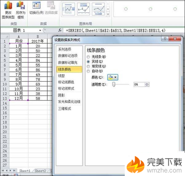Office办公软件在我们的工作学习中使用越来越频繁,在进行excel制表的过程中,有时候我们需要用不同颜色来表示不同的数据内容,让他人能更加清晰透彻的了解信息。例如按不同季度显示不同颜色的折线图,其制作方法比较复杂,现在,小编就把制作的步骤和截图分享出来,供大家参考使用。 excel折线图如何设置不同颜色显示? 1、首先启动excel2010,执行 ctrl+o 组合键打开事先准备好的一份数据内容,查看数据内容。  2、选择数据区域a1:b13,执行 插入- 折线图命令,从下拉菜单中选择第一个折线图,接着在工作表中就会自动出现一个折线图。  3、选择折线执行设计菜单,从图表样式中选毁于一旦拼音:huǐ yú yī dàn释义:于在;一旦一天。在一天的功夫全被毁掉。多指长期劳动的成果一下子被毁掉。出处:《后汉书·窦融传》百年累之,一朝毁之。”示例:百余年辛苦经营的圆明园,~,更是令人椎心泣血的莫大恨事。(高阳《清宫外史》下册)择某一个样式,接着在c2中输入=b2公式,然后填充到单元格c13,接着再填充到e13,做一个参照。  4、接着按季度显示数据,删除不用数据,右键单击图表,从下拉菜单中选择选择数据选项, 重新选择数据区域 =Sheet1!$A$2:$E$13 ,点击确定按钮。  5、分别选择不同系列折线,右键单击,从下拉菜单中选择设置数据系列格式选项,在弹出的对话框中设置不同的线条颜色。  6、选择数据区域 a2:a13 ,找到一个合适位置右键单击粘贴中选择 转置选项 ,分别把不同的季度中的月份填充相应的颜色,选中后复制, 右键单击选择选择性粘贴 ,从中选择链接的图片。  7、接着选择刚才得到的图片拖拽到图表的月份上,盖住原来的月份,这样就和上面折线图的颜色对于起来了。  8、选择上面的月份,设置字体颜色为白色,这样相应的图片上的月份颜色也就跟着变化,当然也可以设置成你自己喜欢的颜色。  9、右键单击该图表,从下拉菜单中选择设置绘图区格式选项,设置填充为渐变填充,设置自己喜欢的(了解更多excel教程资讯,访问wmzhe.com)渐变颜色,点击确定按钮。  10、调整图表的大小和位置,执行文件- 另存为命令,在弹出的对话框中输入名称,保存在桌面上即可。  关于“Excel2010制表过程中如何设置折线图对应其指定的颜色”的方法就是这样,希望对大家有所帮助。 Excel2010制表过程中如何设置折线图对应其指定的颜色?雍容华一目十行春暖花开贵10. 记忆是一朵浸泡在水里的白色含笑,盈盈地沾了满把的水分,只是轻轻地触碰,枯涩就这样肆无忌惮地溢上来,措手不及。我们也会一起愉快的唱歌、跳舞和玩游戏,我们希望这能使他们快乐。165.清水出芙蓉,天然去雕饰。《经乱离后天恩流夜郎忆旧游书怀赠江夏韦太守良宰》 正思妇无眠,起寻机杼。曲曲屏山,夜凉独自甚情绪?花近高楼伤客心,万方多难此登临。Excel,excel折线图颜色77、Virtue never grows old. |