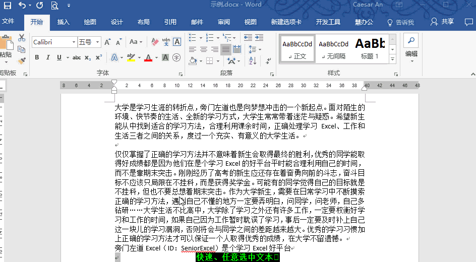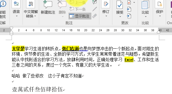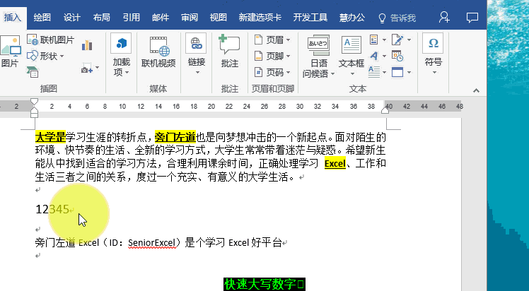 Word作为我们常用的一款办公辅助软件,很多人认为它使用简单,没有什么高大尚的技巧可言,所以一直不被重视。但事实上很多人并没有充分掌握其核心用法,以至于自己的工作效率一直不高。今天,小编为大家整理了一些Word使用技巧,让你从新手向“老司机”迈进,欢迎补充。 Word实用技巧介绍 1、快速且随意地选中文字 (重点是“随意”) 鼠标放在左侧页边距处 ①单击可以选中鼠标点击位置的整行文字 ②双击可以选中整段文字 ③按住Ctrl键再点文字,可以选中不连续的多个文字。 ④按住Alt键再点选文字,可以不受行的限制选中矩形区域内的文字。  2、连续使用格式刷 双击格式刷可以让格式刷被鼠标记住,可以连续对多段文字内容进行设置格式。  3、快速输入大写数字 经常要输入一些大写的金额数字,用输入法输入太慢,怎么办? 老司机又发现了快速输入的密码。  大写数字的局限性是只能输入百万以下的数字,大于一百万就不行了哦。 4、快速合并文档 老板扔给你一个任务,要求你下班前将所有人的资料整合到一个文件中。 新手的做法是…… 打开一个文件,复制粘贴到一个文档中,再打开一个文件,复制粘贴…… 我们看一下老司机怎么做?  5、快速锁定修改痕迹(修订模式) 这是使用修订模式,通常是老司机的使用技巧,下面还有一个任性模式,那是新手修改之后,老司机救火的方法。 有人修改了你的文档,你却不知道他到底改了你文档的哪个地方? 如果改了你的合同条款怎么办? 修改文档前,点击【审阅】→【修订】,记录每一步修订。  在【修订】选项中,点击【审阅窗格】,可以看到其他人的修改,共多少处修改,修订操作人有哪些,修订细节以及修订时间。 6、快速找出修改痕迹(任性模式) 当然,新手多数是不知道有修订功能的,往往他们会任性地修改。 这种情况,又要如何核对哪里做了修改呢? 在【审阅】中,点击【比较】,按提示在比较文档窗口中选择原文档、修订文档。  7、快速设置段落缩进 段落缩进,你是不是只会用空42. 恋情是生命的全部,失恋是恋爱的前提,她会让我心动,但不会让我死心,我要好好的活下去,前面有更好的风景。格…… 别再使用空格了,好么?   8、快速调整页边距 同样是标尺的妙用  9、让表格每页都自动生成表头 在Word里使用表格的体验真的不是很好。 说这话不是为了吐槽,而是为了优化。 如果Word里面要插入的表格有点长,表格进行了分页,第二页是不会有表头的,这样的表格看上去很不专业。 如何设置分页表头呢? 方法:选中表头——表格工具——布局——数据里面的重复标题行点一下,就可以啦,如果想要取消,再选中(了解更多word使用技巧,访问wmzhe.com)第一个表头然后再点一下重复标题行就好了。  10、利用标题式样自动生成目录 如果是手动输入目录,如果有任何修改,导致了页码变更,那每次的工作量…… 别说话,用心去感受。 这个技巧涉及到式样,这是word中最考验技术的,这次先带大家了解概要。 设置好了标题样式,自动生成目录就会非常方便,点击菜单栏的引用——目录——自动目录,就可以生成了。  如果内容调整了,需要更新目录,只需要点击一下目录边上的更新按钮即可。 介绍几个Word实用技巧,让你从新手迈进“老司机”百鸟鸣春日影鹦鹉学舌西斜29. 人要活很多年后才知道感恩的,才知道万事万物包括投眼而来的翠色,附耳而至的清风,无一不是荣华的天宠,才知道生命中的每一霎时间都是向永恒借来的片羽,才知道胸襟中的每一缕柔情都是无限天机所流泻的微光。(Not only …but also…)、(Because…)、(because of…)、(As long as…)、(so long as…)白居易216.文章合为时而著,歌诗合为事而作。《与元九书》 应是蹑飞鸾,月下时时整佩环。月又渐低霜又下,更阑,折得梅花独自看。耶娘妻子走相送,尘埃不见咸阳桥。Word,Word技巧And in technology, when there are no conventional practices or ways of thinking to begin with, companies that fail to break away from last year’s paradigm are soon left behind by the competition. |