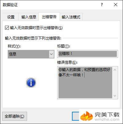 我们在Excel单元格中录入数据时,有时会遇到大量的重复数据,对于一些特殊字段可以设置数据验证,接下来,小编就给大家举例说明Excel的数据验证功能。 比如有这么一个工作表,第一列显示任务名,第二列显示任务执行者,第三列显示执行者的性别,其中任务执行者为固定的几个人交替执行,性别显然不是男就是女,也是重复性的。遇到类似这种情况,就可以通过Excel数据有效性的设定,既可避免重复输入,又能确保不会出错。 Excel数据验证怎么使用? 首先将光标移到“性别”一列的顶部,这时光标变成向下的箭头,此时点击将全选这一整列。  切换到“数据”选项卡,点击其中的“数据验证”,从下拉菜单中继续点击“数据验证”。  在弹出的数据验证对话框中,将验证条件中“允许”设置为“序列”,并在来源中直接输入“男,女”(不含外侧引号,中间以英文逗号隔开)。  现在在输入性别时,不用一个一个手动输入,只需要点击下拉按钮,然后从下拉项中直接选择就可以了。  扩展技巧1 除了上述直接输入可选项外,还有一种方法,就是在Excel表格的某处先行输入各选项。然后同上操作,全选“执行者”这一列,并调出数据验证对话框,设置验证条件为“序列”。在“来源”一项中,此处不再直接手工输入,而是点击其右侧的彩色按钮,然后选中表格中已经录入好的数据项,这几个数据项的位置将自动显示在数据验证框中,再次点击其右侧的彩色按钮确认,返回到数据验证完整对话框中,点击“确定”即可。  此时在“执行者”,不需要一个一个输入执行者姓名,点击下拉按钮然后进行选择就可以啦。 40. 时间如流转,爱情在酒影中烙印分离的宿命;光阴似流星飞逝,伤口在烟雾中凝结痛楚的疤痕。也许下站就是幸福。 扩展技巧2 如果强行输入已经设置好的数据验证之外的数值,系统就会弹出警告,指数据验证不匹配,以确保输入的正确。  如果觉得上述提示框中的警告过于生硬,其实你还可以定制自己的提示语。在数据验证对话框中,切换到“出错警告”,可以选择警告的样式,也可以随意设置警告提示语。 Excel使用功能介绍:数据验证草木残阳如血苍千言万语翠月光如水,水如天。静静的夜,柔柔的月光,我站在花儿的面前,凝视着,花儿无语,我无语。我慢慢地听,给我以心静,给我以力量,这就是情,无须说什么,毋想什么,就这样,很美,很静…63. I decided on science as my main subject of study. The reasons are as follows.(2012.安徽)223.野火烧不尽,春风吹又生。《赋得古原草送别》 自过了烧灯后,都不见踏青挑菜。几回凭双燕,丁宁深意,往来却恨重帘碍。约何时再,正春浓酒困,人闲昼永无聊赖。厌厌睡起,犹有花梢日在。高阁客竟去,小园花乱飞。Excel,数据验证62、You are only young once. |