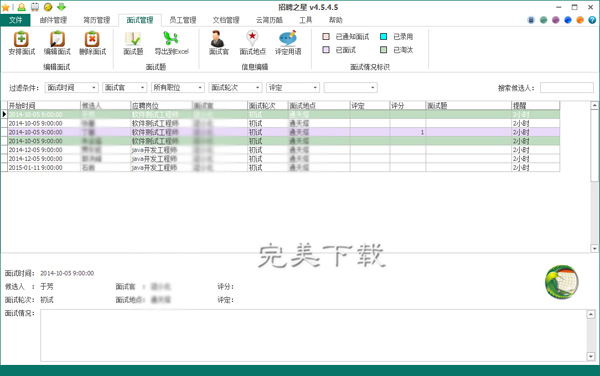 对于企业负责招聘的工作人员来说,一到毕业季,就会收到大量的求职信息,每天在一大堆简历中查看筛选,着实是工作量大,这时,我们可以借助一些招聘管理软件智能筛选出符合要求的简历,来减轻工作量。今天,小编就给大家介绍一款智能化的、体积小巧的简历管理软件——招聘之星。 招聘之星是一款简历接收管理软件,它可以帮助企业招聘工作人员智能管理一大堆的简历,软件能对简历的真实性、应聘者的市场竞争力给出评估,帮助招聘人员作出正确抉择,合理制定薪酬,提高雇佣最佳员工的可能性。 同时该软件具有智能分析系统,筛选简历轻松快捷,可以按照招聘者的要求针对学历、年龄、工作经验等条件。自动准确的筛选出符合要求的简历。 能够大大降低招聘工作人员的负担,提高工作人员点的工作效率。  招聘之星软件功能介绍 招聘之星是集邮件管理、简历管理、人事管理、文档管理、云存储于一体的全功能、智能化人力资源系统解决方案。 招聘之星的邮件管理可以作为电子邮件客户端接收和发送电子邮件。接收邮件时自动识别挑选出简历邮件,并将简历邮件按照您的职位分类进行入库管理。  招聘之星的简历管理模块可以自动处理一切简历相关的工作。无论是邮件格式、文本格式、word文档格式,甚至是直接粘贴录入的简历等等,都可以自动识别转换成统一格式下的简历库进行管理。  招聘之星的面试管理可以高效的组织安排面试工作,使海量面试工作变得井井有条。  招聘之星的文档管理模块可以帮助用户快速存储和管理摘录文档(下载文档管理软件,访问https://www.wmzhe.com/heji/wendangguanliruanjian/)。42. 这个世界没有谁离不开谁,太阳每天都会从东方升起。 当用户在网上阅读文章资料时,遇到感兴趣的内容,可以直接将其拷贝存入文档管理,无论是以后的阅读和检索,都具有极大的便利。  招聘之星为用户提供了安全可靠、便捷易用的在线企业人才库解决方案,无论您是个人还是企业,都可以免费使用云简历酷服务,建立隶属于自己的专业人才库。 招聘之星软件帮助企业HR人员从繁琐的招聘工作中解脱出来,合理的简化招聘流程,有效的筛选简历,高效的获得人才,合理的管理人才。 招聘之星——体积小巧、功能丰富的简历管理工具千七拼八凑钧纷至沓来一发32. 以前一度追求人生只若初相见,总觉得世间的缘分最美时,就是彼此擦肩回眸的一笑。事过境迁,体会到大多数惊鸿的一瞥,都如烟花般绚烂后又回到了寂静。最后空留一座城,让注重感情的人,一生心痛。take immediate actions 立即采取行动;better vt. 改善276.昨夜西风凋碧树,独上高楼,望尽天涯路。《蝶恋花》 卷絮风头寒欲尽,坠粉飘香,日日红成阵。新酒又添残酒困,今春不减前春恨。238刘长卿:弹琴简历管理,招聘之星,文档27、Haste makes waste. |