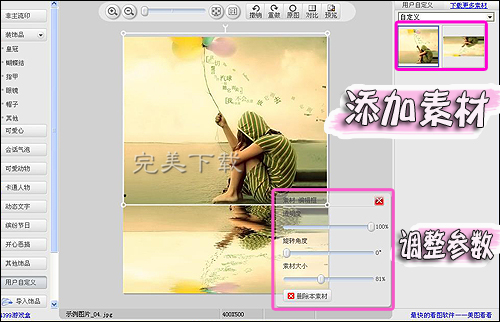 美图秀秀是大家常用的一款图片编辑处理软件,利用45. 快乐总和宽厚的人相伴,财富总与诚信的人相伴,聪明总与高尚的人相伴,魅力总与幽默的人相伴,健康总与豁达的人相伴。美图秀秀可以给图片制作出很多有个性的效果,比如说动态的倒影效果。今天,小编就给大家介绍下用美图秀秀制作图片动态水纹倒影双重效果的方法。 效果展示图  如何用美图秀秀制作图片动态倒影双重效果? 1、启动软件,打开一张待处理的图片,修改图片尺寸,将原图压扁。  2、选择界面右上角的“旋转”功能,点击“上下翻转”就可以了!如图所示。  3、然后进入“闪图”菜单下,利用一键闪效之水波纹,就可以做出水流动的效果。倒影的部分就这么轻松搞定了。当然闪速要根据需要适当调节一下,如图所示。  4、将倒影部分做好后,把它保存起来作为素材备用。然后重新打开一张竖状图片,用涂鸦笔刷白,做成背景。如图所示。  5、然后进入“饰品”菜单下,将原图和倒影的图片导入到“用户自定义”中。如图所示。  6、导入之后,就可以作为饰品使用了。在“用户自定义”分类下,把倒影和原图添加到白色背景上,按照倒影的效果调整两图的位置大小即可。如图所示。  这种动态水纹的倒影效果在照片拍摄过程中好像很难实现,但是在“美图秀秀”中制作还是相当简单的,动态效果比普通的倒影效果更有视觉体验(美图秀秀下载地址:https://www.wmzhe.com/soft-39874.html)。 如何用美图秀秀让图片呈现出动态倒影的双重效果?狼吞摩肩接踵发奋图强虎咽10. 男人的年龄是写在脸上的经历,是刻在心头的智慧,是深沉的魅力。而女人的年龄是隐藏在心头的刺,说不得碰不得,好像树的年轮,一圈一圈全藏在心里。82. I worked hard and got along well with my teachers and classmates.(2012.湖北)316.读书千遍,其义自见。《熟读精思》 怎奈何欢娱渐随流水,素弦声断,翠绡香减;那堪片片,飞花弄晚。蒙蒙残雨笼晴。正销凝,黄鹂又啼数声。尔来四万八千岁,始与秦塞通人烟。美图秀秀,美图秀秀倒影6、Keep something for a rainy day. |