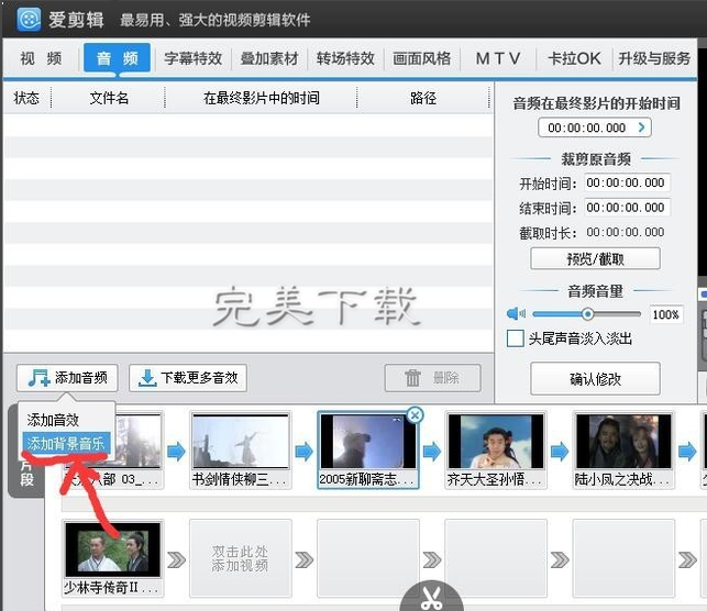 现在很多人都喜欢自己制作视频,有时会发现自己的音频与视频节奏不对,播到后面都没有背景音乐了。又或者有时候我们想在一段视频里设置不同的歌作为背景音乐,但是不知道如何切换音乐或者循环播放,下面小编就告诉各位网友如何用爱剪辑切换不同类型的背景音乐,当然也可以用来循环播放哦。 爱剪辑如何切换不同类型的背景音乐? 1、打开爱剪辑,建议先将视频剪辑好,估摸一下剪好的视频需要几首音乐搭配,下图是小编剪好的视频,大概需要两首歌  2、点击“添加音频”,在添加背景音乐选项里再点击“添加背景音乐”,在打开的文档中找到你下载的音频文件。小编是下在E盘里的,所以去E盘找。   3、小编先添加了一个音乐,看小编红色箭头指向的地方,选择的是“最终影片的0秒处开始”,这时我让歌曲从头开始播放,一直到一首歌结束,点击“确定”,这首歌就添加进去了。  4、我看们可以看到在左手边添加进去一首歌,然后点击毁方投圆拼音:huǐ fāng tóu yuán释义:比喻抛弃立身行事准则,曲意投合别人。出处:无示例:无“确定修改”,记住你点击“确认修改”时一定要保证你的页面是在你第一条视频上。  5、小编看到自己添加的歌曲是5分钟13秒,这时需要你将鼠标点到5分钟左右,如果你的时间多余可以打开视频听听效果怎么样一直到歌曲结束时,点击右面视频框里的暂停键。比如小编的音乐其实在5分钟7秒时就没有声音了,点击暂停之后,开始点击“添加音频”,重新加入新歌曲或者仍旧添加同一首。  6、点击“添加背景音乐”之后,选中加入的歌曲,然后就会出现一个画面,画面中跟第三步有一个选项不同,小编用红色箭头标了出来,选择“主界面预览窗口中正暂停的时间点”。  7、点击“确定”之后,如图所示,就添加了两个不同的歌曲,当然也可以添加相同的,相同的就是循环播放了。可以看到小编两首歌加起来还不够视频时长,没关系,按照第二个歌曲添加的步骤去添加就可以了。 用爱剪辑设置视频背景音乐的操作方法分享头重脚手无缚鸡之力发奋图强轻15. 第一次和汤说话,感觉不是很好,他戒心重,对自己的保密看得很重。好在我也是这样的人,反而觉得更加简单。问他做什么工作的,他含糊其辞,说是收集信息,我知道他不喜欢说,也就不问。除了强身健体和丰富知识之外,课后活动也让我从繁重的学业中解脱出来。《礼记》19.玉不琢,不成器;人不学,不知道。 飞云冉冉蘅皋暮,彩笔新题断肠句。试问闲愁都几许?一川烟草,满城风絮,梅子黄时雨。禁里疏钟官舍晚,省中啼鸟吏人稀。爱剪辑,爱剪辑切换背景音乐55、All time is no time when it is past. |