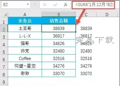 我们在制作Excel表格的过程中,少不了用到各种函数应用,SUM函数可以说是Excel中最常用、也是被认为最简单的一个函数。但你真的学会了吗?SUM函数只是用于单一的求和吗?耐心看完下面的教程,你会改变你的看法。 Excel中SUM函数的应用 1、多表求和 汇总各业务员1-12月的销售金额,在各表的结构一致的情况下,现要汇总各业务员全年的销售总额: 在总表B2单元格输入公式:=SUM(\'*\'!B2),向下填充。或者输入公式:=SUM(\'1月:12月\'!B2),向下填充。  公式=SUM(\'*\'!B2)是表示除当前工作表之外的所有其他工作表B2单元格的和,在输完公式后,按下Enter键*会自动变成实际的工作表名,如:=SUM(\'1月:12月\'!B2)。 2、多条件求和  输入公式:=SUM((A2:A8="二班")*(C2:E8>=80)*C2:E8),数组公式,按Ctrl+Shift+Enter三键结束。 解析:(A2:A8="二班")*(C2:E8>=80)部分是两个条件都成立的返回1,不成立的返回0,再*C2:E8部分得到的都是既是二班又大于等于80的分数,因为是数组所以用SUM求和时要加花括号。 3、累计数求和 如下图所示,在设置总计公式时,不需要用小计1+小2+小3..了,只需要设置公式:=SUM(B2:B14)/2  4、合并单元格求和 合计单元格的求和是一个难点,如果用一般的方法公式很复杂,如果巧用SUM函数的倒减法,公式变得超简单。 =SUM(C2:C13)-SUM(D3:D13) 注:在输入公式时不能拖动复制的,需要选取D2:D13,先在D3输入公式,然后把光标放在公式结尾处,按ctrl+回车键批量输入。 5、在Word中设置求和公式 在word中插入表格后,就可以在布局中找到公式命令,根据提示插入Sum函数,复制后按F9更新下面行的结果即可。  6、任意多表求和 如果N个不相邻的表的同一个单元格求和,直接用SUM不行,需要用SUM(SUM(结构,这里等同于SUM(N,提取三维引用的单元格求和。 =SUM(SUM(INDIRECT({1,2,3}&\'!A1\'))) 或 =SUM(N(INDIRECT({1,2,3}&\'!A1\'))) SUM函数的几种常见应用介绍,赶快收了!龙腾转危为安虎天经地义跃42. 花越开越密,越开越盛,不久便挂满了枝头。走近看,仿佛是一个个活泼的小喇叭,正鼓着劲儿在吹呢。51. We are blessed with new opportunities and faced with new challenges.107.明修栈道,暗渡陈仓。 青玉案 苏轼闲来垂钓碧溪上,忽复乘舟梦日边。SUM函数,Excel12、Good wine needs no bush. |