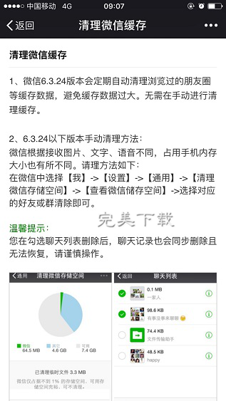 手机内存不足是一个让众多用户十分头疼的问题,我们在使用手机中的软件时都会产生一些缓存,长时间不清理会越积越多,占据手机内存空间,影响使用。有用户反映在更新微信版后发现清理缓存这个功能不见了,其实它是隐藏得更深了,就让小编带着你重新找回这个非常实用的功能吧。  微信如何清理缓存? 一、6.3.24以下版本手动清理缓存方法 在微信中选择【我】-【设置】-【通用】-【清理微信存储空间】-【查看微信储存空间】-选择对应的好友或群清理即可。 你在勾选聊天列表后,聊天记录也会同步删除且无法恢复,请谨慎操作。     二、微信6.3.24及以上版本清理缓存的方法 小编这里是以iPhone版微信6.3.25为例,安卓新版本微信清理缓存方法相似(缓存清理软件下载地址:https://www.wmzhe.com/heji/huancunqingli/)。 1、进入“我”的页面的“设置”。  2、找到“帮助与反馈”,可不是以前村生泊长拼音:cūn shēng bó cháng释义:指生长于村野。泊,水泊。出处:明·无名氏《孟母三移》第一折他乃是公子人家子孙,强似您这等村生泊长,无指教的小厮每。”示例:无的那个“通用”哦。  3、隐藏得很深,点击下面的“快捷帮助”。  4、然后就可以看到一个扫把样子的“清理缓存空间”,点击就可以清除缓存了。  5、大功告成。 微信清除缓存信息的详细步骤分享不耻螳臂挡痛定思痛车下问4. 盈一怀静谧,我将自己谱成一首经典的老歌,在舒缓的旋律中演奏出动人的乐章。从此,持一种完美的生活态度内敛而不张扬,端庄而不做作,给岁月留一份静好。I have made up my mind to complete the task.范仲淹272.先天下之忧而忧,后天下之乐而乐。《岳阳楼记》 感皇恩 贺铸潮平两岸阔,风正一帆悬。微信,微信清理缓存To reverse (check / control) the trend (tendency) is not a light task (an easy job), and it requires (demands / involves / entails) a different state of main towards (attitude towards / outlook on)… |