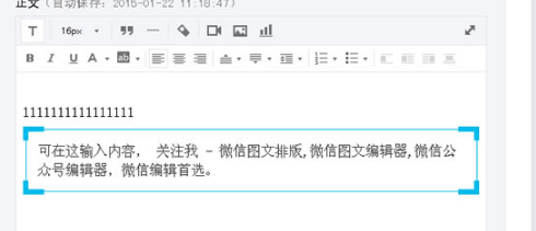 96微信编辑器可以帮助大家非常方便简单的制作微信公众号文章,不过一些小伙伴在使用96微信编辑器选择素材的时候,出现了一些问题,96微信编辑器素材怎么选择,下面小编就给大家带来96微信编辑器素寸兵尺铁拼音:cùn bīng chǐ tiě释义:比喻微小的武力。出处:宋·苏轼《策略五》不用寸兵尺铁,而天下屏息,莫敢或争。”示例:无材选择方法技巧。   以上图片,就是昨天有个朋友编辑的时候遇到的问题,原本是按照流程 全选(Ctrl+A)——复制(Ctrl+C)——粘贴(Ctrl+V) 到微信公众平台里面,但是无论他怎么做都会出现问题,本身素材在这个添加时没有错误了,就是复制的时候 没有复制完整,就算全选也是没法复制的,那么如何才能解决,就是小编告诉大家的。 首先大家进入96微信编辑器(微信编辑器下载地址:https://www.wmzhe.com/heji/weixinbianjiqi/),选好自己的素材,不要快速的点击选中素材进入右边的编辑框,大家可以可以再右边的编辑框架里面从上面打点空白区域或者打个数字也行,就是隔开的意思。然后在选中素材,进入右边的编辑框。如下图:  然后在按照步骤:全选(Ctrl+A)——复制(Ctrl+C)——粘贴(Ctrl+V) 到微信公众平台里面   整体的复制进来了,然后在把空白的一排的内容删除或者把数字去掉  这样就可以完整了(记住一点复制框架的时候,上面必须有图片或者文字,头部不能没有文字或者图片,如果没有就会出现空白字) 使用范围:针对于一些不是图片格式的模板等素材 上文就是“96微信编辑器素材选择的方法技巧”的内容介绍,希望对大家有所帮助。 96微信编辑器素材怎么选择?96微信编辑器素材选择的方法技巧兵马多桃李满天下(千军万马)江山如画28. 人总是需要慢慢品味的。见多了那种一见面就扯着别人介绍自己的人,心下厌烦。其实他说自己“特讲义气”,买单可能是跑得最快的一个,说自己“女友成群”,明明就长得象只青蛙……交往多了,发现他就是这个档次。每当我对这样的人皱起眉头时,就看见汤在一旁会意的笑,不说话。go by 流逝;adapt oneself to sth 使自己适应某事物260.当局者迷,旁观者清。《新唐书?元行冲传》 翠楼吟 姜夔奉帚平明金殿开,且将团扇共徘徊。微信编辑器,96微信编辑器,96微信编辑器素材选择66、Fact is stranger than fiction. |