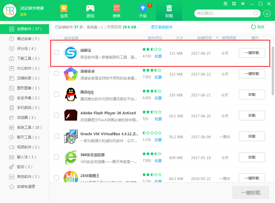 线刷宝是一款非常不错的安卓手机刷机工具,不过其很多功能还不是很稳定。今天小编就来跟大家说一说彻底卸载线刷宝的方法,如果你在卸载它时遇到了问题,那就快来看看吧。 彻底卸载线刷宝的方法 方法一 1、首先用鼠标右键点击线刷宝的桌面图标,然后在弹出的选项中点击“打开文件位置”来到线刷宝的安装文件夹;  2、接着在该文件夹中找到叫做“uninstall.exe”的应用程序,之后双击运行该程序并根据提示点击下一步即可将其卸载。  方法二 1、打开你电脑中的卫士类软件自带的管家功能,以360软件管家为例(360软件管家下载地址:https://www.wmzhe.com/soft-18092.html); 2、然后在管家的“卸载”界面中找到“线刷宝”,之后点击&ldqu寸步千里拼音:cùn bù qiān lǐ释义:寸步指距离非常短。虽然相距只有寸步,却如同千里之隔。比喻相见非常困难。出处:唐·卢照邻《狱中学骚体》寸步千里兮相闻,思公子兮日将曛。”示例:无o;卸载”并根据提示操作即可将其卸载。  方法三 1、在电脑左下角的开始中打开控制面板; 2、在控制面板中打开“卸载程序”功能;  3、接着在卸载程序界面找到“线刷宝”并用鼠标右键点击它,之后在弹出的选项中点击卸载就可以了。  方法四 1、首先打开线刷宝的安装文件夹; 2、接着用快捷键“Ctrl+A”选中该文件夹中的所有文件,之后将他们删除就可以了; 3、如果有无法删除的文件可以将用360安全卫士自带的粉碎机功能将其粉碎即可; 4、或者提示“该程序正在被使用”,那我们就重启或者注销电脑后在删除就可以了。 线刷宝怎么卸载干净?彻底卸载线刷宝的方法人声见识多(事物多(林林总总)见多识广)喧哗24. 不要因为自己长相不如对方而放弃追求的打算,长相只是一时的印象,真正决定能否结合主要取决于双方的性格。我见过的帅哥配丑女,丑女配帅哥的太多了。diligent 勤奋的 energetic精力充沛的 humorous幽默的 attractive有吸引力的138.蝉噪林愈静,鸟鸣山更幽。王籍《入若耶溪》 幽寂,乱蛩吟壁,动庚信清愁似织。沉思年少浪迹,笛里关山,柳下坊陌。孤云将野鹤,岂向人间住!线刷宝,彻底卸载线刷宝24.Ill news travels fast. 坏事传千里。 |