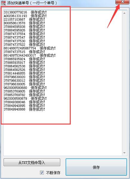 如果你经常要处理大批量的快递订单、跟踪订单信息,五花八门的快递公司、快递单号是否让你每天焦头烂额,小编这就为你推荐一款批量快递单号查询神器为你解决当务之急。 怎么批量查询快递单号? 1、首先下载安装:快递批量查询高手 2、第一次打开软件后,要注册一个账号,这个账号是免费注册的哦,软件也是免费试用的。注册好后,登录软件,进入软件后,点左上角的“添加单号”,如图:  3、可以从EXCEL中复制一整列的单号,也可以从TXT文本文档中批量导入,当然也可以复制输入单号,关键是一行复制一个单号,这些单号可以是不同快递公司的,输入单号后,点“保存”,如图:  4、我们可以看到每个单号右边都显示保存成功了。到这一步,只是把这些要查询的快递单号都保存在表格中了,现在我们点右上角的关闭,关掉这个添加单号的窗口,如图:  5、现在软件自动开始查询这些单号了,并会把查询的结果自动保存在表格中,以后再打开软件就不用再检查已签收的快递了。当然以后打开软件,软件会自动查询未签收的快递最新物流进程。如图:  6、很快,所有未签收的快递信息都查询好了,在表格中可以清楚地看到每个单号的信息。我们把窗口最大化,还能查看到更多的表格内容,并且选择一个单号后,点上面的“订单详情”(也可以右键选择,也可以双击鼠标左键),还有更详细的快递运送流程,如图:   好了,更多功能还有批量导出CSV表格、备份数据库、多条件搜索、各列升降序排序等等功能,我就不一一介绍了,相信大家会把所有的好功能都自己挖掘出来的(了毁风败俗拼音:huǐ fēng bài sú释义:败坏良好的风俗。同伤风败俗”。出处:《晋书·刘毅传》毁风败俗,无益于化;古今之失,莫大于此。”示例:无解更多精彩教程资讯,关注wmzhe.com)。 怎么批量查询快递单号?快递单号批量查询软件白浪万紫千红滔天目中无人22. 书在这个世界上是不可缺少的。书主宰了这个世界。书不仅传播知识,而且传承文化,它时刻影响人们的观念意识。一本书可能引发一场战争,也可掀起一种潮,它可以影响一代人甚至几代人。因而,书拥有独特的核心能力。challenge vt. 挑战192.留连戏蝶时时舞,自在娇莺恰恰啼。《江畔独步寻花》 法曲献仙音 王沂孙闲来垂钓碧溪上,忽复乘舟梦日边。查询快递单Equipped with the money, one can acquire the taste, style, and ideas that mark each class and launch a quick ascent of the social ladder. |