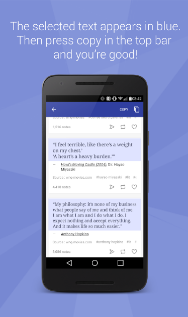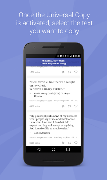 使用手机时,我们经常会完成复制粘贴的操作,但是由于某款软件或网页本身的限制,在长按手机屏幕时是无法选择或者无法复制的,Universal Copy全局复制正是为解决这一问题而生。Universal Copy可以突破应用自身的限制,40. 抱怨是一种致命的消极心态,一旦自己的抱怨成为恶习,那么人生就会暗无天日,不仅自己好心境全无,而且别人跟着也倒霉。抱怨没有好处,乐观才最重要。轻松复制粘贴手机上的文字,使用简单,而且是免费的哦!  即使软件本身不允许选中文字,Universal Copy也能帮你复制出来。 原理是利用了Android系统内置的「无障碍」功能权限和特性,可以增强你手机的复制能力,任意文本的复制都能完成。  软件的使用也是傻瓜式的了,只有「开启」和「关闭」两个模式。开启软件后,只要通过下拉通知栏即可进入“全局复制”模式,破解那些不允许复制文字的APP限制,长按想要复制的文字就行了。除了整段文字复制之外,Universal Copy还支持一次复制多选区文字,我们只需要依次点击几段想要复制的文字,点击复制按钮,那么这几段文字都会被复制下来!主要针对一个界面里需多处需要复制的情况。  虽说Universal Copy是根据Android系统内置的「无障碍」功能权限和特性来实现复制粘贴的功能的,但是Universal Copy 并不需要 Root权限,也不会对系统有任何修改行为,在安全性能上有一定的保障。 在遇到需要使用大量文字却不能复制时,Universal Copy全局复制就能帮上大忙了。 让安卓手机上所有文字都可以复制的工具——Universal Copy全局复制五光十色垂头丧气万紫千红12. 人生路上,你我都是过客,来去皆是缘分。也许,某年某月的某一天,某条街上,一个熟悉的背影出此刻我的视线,也正好蓦然回首,却不是你的脸,只是恰似你的温柔。我衷心感谢你为我和我家人所做的一切。361.种瓜还得瓜,种豆还得豆。 叶下斜阳照水,卷轻浪、沉沉千里。桥上酸风射眸子。立多时,看黄昏灯火市。寒灯思旧事,断雁警愁眠。UniversalCopy,复制粘贴If so, even though 3 percent more accidents occurred after the change, the author’s argument that changing the speed limit increases danger for drivers would be seriously weakened. |
