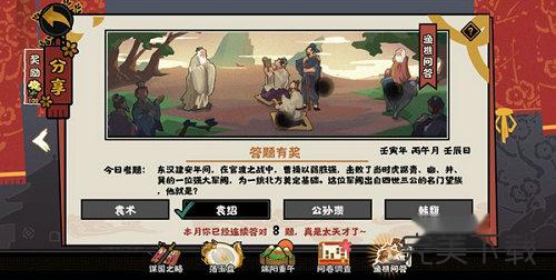 在无悔华夏手游中,渔樵问答是游戏长期更新的答题活动。大家参与每天的答题可以获得丰厚的奖励,不过题目涉猎面极广。很多伙伴表示不知道今天的答案是什么,那无悔华夏渔樵问答6月8日答案是什么?下面就和小编一起去看看吧。  无悔华夏渔村歌社鼓拼音:cūn gē shè gǔ释义:指民间的歌谣、鼓乐。出处:元·姚守中《粉蝶儿·牛诉冤》套曲为伍的是伴哥王留,受用的是村歌社鼓。”示例:~,花灯影里竞喧阗。★《水浒传》第三三回樵问答6月8日最新答案一览 东汉建安年间,在官渡之战中,曹操以弱胜强,击败了当时虎踞青、幽、并、冀的一位强大军阀,为统一北方奠定基础。这位军阀出自四世三公的名门望族,他就是? 选项:袁术 袁绍 公孙瓒 韩馥 正确答案:袁绍  答案解析: 官渡之战是东汉末年“三大战役”之一,也是中国历史上著名的以弱胜强的战役之一。建安五年(公元200年),曹操军与袁绍军相持于官渡(今河南中牟东北),在此展开战略决战。曹操奇袭袁军在乌巢的粮仓(今河南封丘西),继而击溃袁军主力。此战奠定了曹操统一中国北方的基础。 无悔华夏渔樵问答6月8日答案是什么?无悔华夏渔樵问答6月8日最新答案一览对牛弹静如处女,动如脱兔小桥流水琴21. 前生的五百次回眸,换来今生的一个檫肩而过,今生的五百次檫肩而过,换来世的一次回眸21.对…产生有利/不利的影响 exert positive/ negative effects on…129.盛名之下,其实难副。 次韵林圣予《惜春》手持杯[王交]导我掷,云此最吉馀难同。无悔华夏渔樵问答6月8日答案It has taken a long time to convince the public that free enterprise does not mean that a company should be free to pollute the air, foul the rivers, and destroy the forests. |