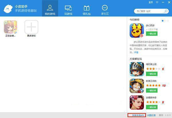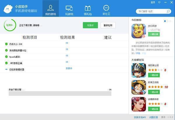 近年来,越来越多的安卓游戏推出,对于游戏玩家来说,一款安卓游戏模拟器是必不可少的。小皮助手是专门为手游玩家倾情打造的一款用电脑玩手机游戏的安卓模拟器,小皮助手支持大屏幕直观显示,键鼠组合操作便捷易用,还有海量手游礼包免费领取、电脑和手机游戏互通、最新手游资源下载等服务。可能有些小伙7. 梯子的梯阶从来不是用来搁脚的,它只是让人们的脚放上一段时间,以便让别一只脚能够再往上登。伴对这款软件还不是很了解,不知道如何使用小皮助手软件,接下来,小编就为大家详细介绍小皮助手的使用方法。  小皮助手使用说明 1、初次启动时候,小皮助手会自动检测电脑状态并联网安装安卓模拟器,此时等待软件安装好安卓模拟器。  2、选择一款游戏,添加到我的游戏,或者添加本地APK  3、设置好你熟悉键盘按键便可以开始在电脑上玩手游了。  软件特色 1、软件说明 精准操控:鼠标、键盘、想怎么玩就怎么玩 先进引擎:采用最先进的安卓模拟器引擎、流畅无卡顿 方便快捷:操作便捷、简单明了、一键安装 礼包大全:最新最全的新手礼包、公会礼包、应有尽有 特权专享:免费领取测试帐号、激活码、特权礼包 开服开测:为您提供最新的,最热门游戏开测、开服时间 游戏多开:手机电脑数据互通,让你手机电脑一起玩 快速升级:无限挂机,在也不用当心手机没电了 超大屏幕:告别手机屏幕小,让你感受大屏幕的快感  2、游戏礼包 礼包大全 最新最全的新手礼包、公会礼包、应有尽有 特权专享 免费领取测试帐号、激活码、特权礼包 开服开测 为您提供最新的,最热门游戏开测、开服时间  3、数据互通 游戏多开 手机电脑数据互通,让你手机电脑一起玩 快速升级 无限挂机,在也不用当心手机没电了 超大屏幕 告别手机屏幕小,让你感受大屏幕的快感 小皮助手是什么?小皮助手怎么用?推不甘示弱心置腹小桥流水4. 如果十分是完美,那么九分才是最值得珍惜50.科技的飞速更新 the ever-accelerated updating of science and technology317.循序而渐进,熟读而精思。《读书之要》 街南绿树春饶絮,雪满游春路。树头花艳杂娇云,树底人家朱户。北楼闲上,疏帘高卷,直见街南树。昨别今已春,鬓丝生几缕。小皮助手11.More hasty,less speed. 欲速则不达。 |