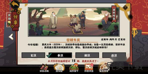 在无悔华夏手游中,渔樵问答是大家每天必做答题活动。大家每天都可以参与答题获得奖励,不过无悔华夏渔樵问答6月22日答案是什么?还有不少玩家表示不知道,下面就和小编一起去看看最新答案吧。  无悔华夏渔樵问答6月22日最新答案一览 6月22日渔樵问答:东汉建安十六年(211年),占据益州的某位军阀邀请刘备入蜀,试图借刘备之力抵御割据汉中的张鲁,没想到却弄巧成拙,让自己垂暮之年拼音:chuí mù zhī nián释义:垂将,快要;暮晚,老年。快要到老年。出处:宋·张元幹《庐川词·醉落魄》年华垂暮犹离索。”示例:无的益州也无法保住,最终反倒成就了刘备的大业,此人是? 选项:刘焉 刘璋 刘表 刘虞 正确答案:刘璋,玩家们选择第二项即可获得奖励。  答案解析: 刘璋(生卒年不详),字季玉,江夏竟陵(今湖北省天门市)人。东汉末年宗室、军阀,益州牧刘焉幼子,在父亲刘焉死后继任益州牧。刘璋为人懦弱多疑。汉中张鲁骄纵,不听刘璋号令,于是刘璋杀张鲁母弟,双方成为仇敌,刘璋派庞羲攻击张鲁,战败。后益州内乱,平定后,又有曹操将前来袭击的消息。 在内外交逼之下,刘璋听信手下张松、法正之言,迎接刘备入益州,想借刘备之力,抵抗曹操。不料此举乃引狼入室,刘备反手攻击刘璋,又有法正为内应,进至成都。成都吏民都想抵抗刘备,但刘璋为百姓计而开城出降,群下莫不流涕。 无悔华夏渔樵问答6月22日答案是什么?无悔华夏渔樵问答6月22日最新答案一览秋风送爽车数不胜数水马龙13. 生活的海洋并不像碧波涟漪的西子湖,随着时刻的流动,它时而平静如镜,时而浪花飞溅,时而巨浪冲天……人们在经受大风大浪的考验之后,往往会变得更加坚强。我对我们队在运动会上的表现感到失望。323.稻花香里说丰年,听取蛙声一片。《清平乐?村居 乡梦断,旅魂孤,峥嵘岁又除。 衡阳犹有雁传书,郴阳和雁无。花迎剑佩星初落,柳拂旌旗露未干。无悔华夏渔樵问答6月22日答案36、Behind the mountains there are people to be found. |