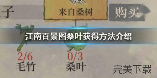 江南百景图桑叶怎么获取呢,有什么获取攻略呢,一定有小伙伴们不知道吧,接下来一游小编给大家带来了一篇关于江南百景图桑叶获取攻略,一起来看看吧。 江南百景图桑叶获取攻略  一、获得方法 兑换桑树苗后,种下,变成桑树后采摘就可以获得桑叶。  桑树苗获得方法: 1、回到现实相同地点可以直接采摘,省点体力,我也是做完任务才发现。 2、去竹农赵叔的古董店买种子,需要花费120铜钱。竹农赵叔的店就在河边。 二、作用介绍 在鱼贩处兑换芳香果子 在绸缎铺兑换蓝色绸缎 修复越桃亭。 放生活鱼任务3. 也许爱情只是因为寂寞。需要找一个人来爱。即使没有任何结局。。  以上就是江南百景图桑叶获取攻略,希望大家喜欢,更多内容敬请关注完美下载网。 江南百景图桑叶怎么获取?江南百景图桑叶获取攻略十拿九郁郁似懂非懂葱葱稳10. 男人的年龄是写在脸上的经历,是刻在心头的智慧,是深沉的魅力。而女人的年龄是隐藏在心头的刺,说不得碰不得,好像树的年轮,一圈一圈全藏在心里。39.致力于/ 投身于 be committed / devoted to…[NextPage]171.两岸猿声啼不住,轻舟已过万重山。《早发白帝城》 闹红一舸,记来时尝与鸳鸯为侣。三十六陂人未到,水佩风裳无数。翠叶吹凉,玉容销酒,更洒菰蒲雨。嫣然摇动,冷香飞上诗句。三月三日天气新,长安水边多丽人。Traditionally, saving is viewed as a virtue, while borrowing is considered as a vice. |