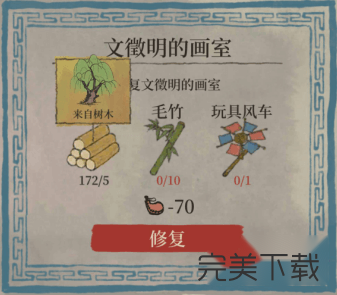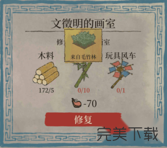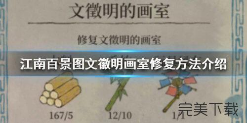 江南百景图文徽明画室怎么修复呢,有什么修复攻略,一定有小伙伴们不知道吧,今日一游小编给大家带来了一篇关于江南百景图文徽明画室修复攻略,一起来看看吧。 江南百景图文徽明画室修复攻略  一、材料介绍 木料*5 毛竹*10 玩具风车*1 体力*70  二、材料获取 木料:砍树木就可以啦。  毛竹:在竹农赵叔处获得毛竹米,种下变成毛竹后,点击获取毛竹。  玩具风车:和桥边一个哭泣的的小孩对话,他就是40. 时间如流转,爱情在酒影中烙印分离的宿命;光阴似流星飞逝,伤口在烟雾中凝结痛楚的疤痕。也许下站就是幸福。乐乐,给他做个扣肉,就可以兑换玩具风车。 扣肉:野猪肉*3,木料*5,锅铲*1。  锅铲在灶台旁边的餐厅废墟里,花费20体力可在餐厅废墟寻找到。 以上就是江南百景图文徽明画室修复攻略,希望大家喜欢,更多内容敬请关注完美下载网。 江南百景图怎么修复文徽明画室?江南百景图文徽明画室修复攻略烈日炎旁敲侧击十拿九稳炎43. 财富是一时的朋友,而朋友才是永久的财富;荣誉是一时的荣耀,做人才是永久的根本;学历是一时的知识,学习才是永久的智慧!70. I was walking east along Park Road, when an elderly man came out of the park on the other side of the street.308.纸上得来终觉浅,绝知此事要躬行。《冬夜读书示子聿》 风入松 俞国宝蜡烛有心还惜别,替人垂泪到天明。Accordingly, this assumption is simply an unproven claim. |